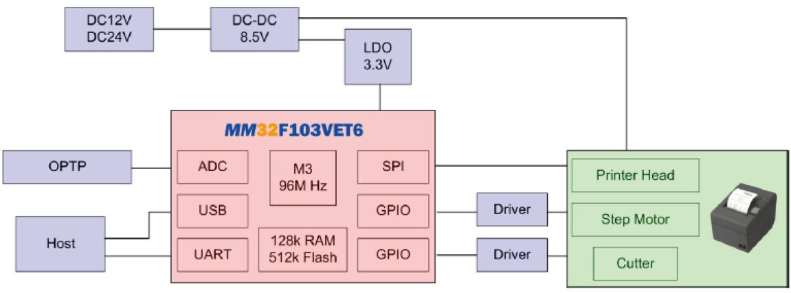 打印機 MM32F103VET6  ● 一維、二維碼打印機