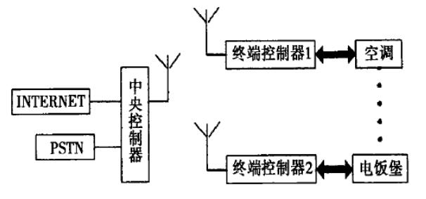 智能家居系統由內置藍牙芯片的系統中央控制器內置藍牙芯片和具有紅外轉換并粘于現有家電的各終端控制器家用計算機和網絡接口等部分組成。其中系統中央控制器通過家用計算機連入lnter-net ,并通過自己的PSTIN 公用電話父狀網次比均系縮中央挖制囂通過藍牙無線傳輸網絡同系統的各終端控制器通過藍牙無線傳輸組成星形拓撲結構。系統中央控制器通過藍牙無線傳輸網絡同系統的各終端控制器進行通訊傳輸控制命令和反饋信息,然后各終端控制器產生紅外控制信號或通過繼電器來最終控制相應的家電。