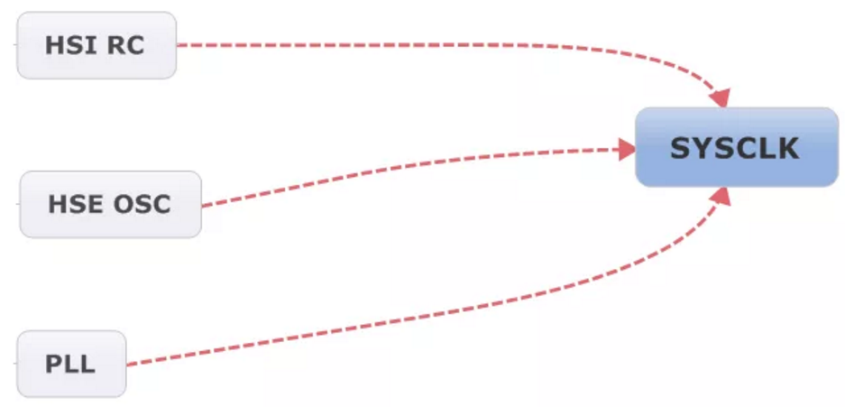 5、SYSCLK時鐘源有三個來源:HSI RC、HSE OSC、PLL