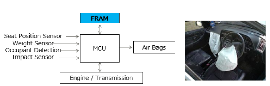環境傳感器&攝像,車聯網通信技術和人工智能決策平臺是自動駕駛技術的核心技術。傳感器,CAN通信,infotainment這些系統需要實時和持續地存儲當前狀態信息,并進行實時分析和處理。因此需要提高存儲器的性能和耐久性設計,這些要求使FRAM成為理想的存儲選擇。