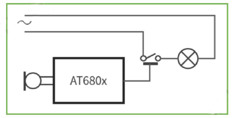 AT6802ABR1在智能聲控燈具場景的工作示意圖