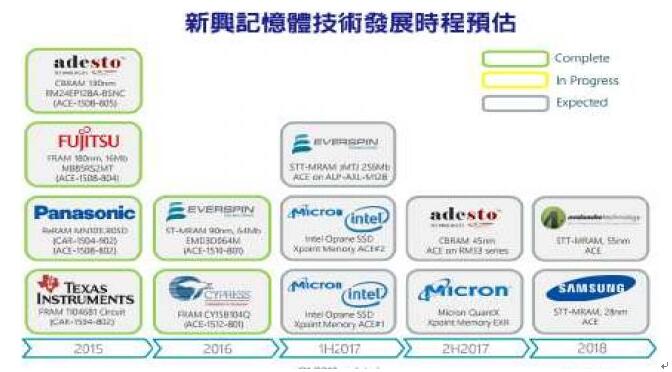 根據(jù)研究機構Tech Insights估計,包含F(xiàn)RAM、STT-MRAM、3D Xpoint 、CBRAM等新世代內(nèi)存,都已陸續(xù)進入小量生產(chǎn)階段。 不過,這些新興內(nèi)存技術中,除了少數(shù)存儲芯片例外,要發(fā)展到能跟NAND Flash、DRAM不相上下的程度,恐怕還需要很長的一段時間,因為DRAM與NAND Flash已具備極為龐大的經(jīng)濟規(guī)模,即便新興內(nèi)存技術在性能方面明顯優(yōu)于現(xiàn)有內(nèi)存,在供貨穩(wěn)定度、成本方面也未必能與現(xiàn)有內(nèi)存技術相抗衡。