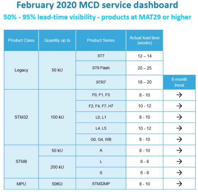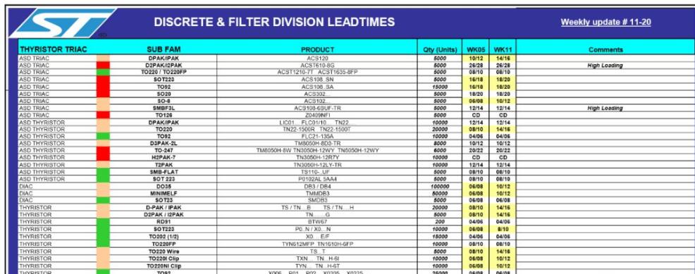 ST最新發布的產品交期表