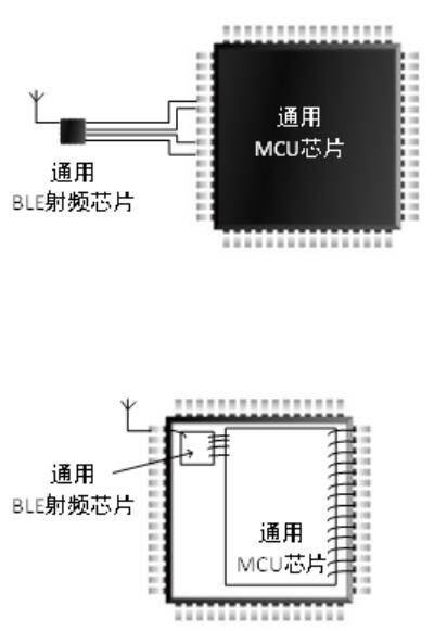 兩顆芯片通過PCB模組或合封的方式來完成功能組合。這一工作可以通過MCU或射頻芯片原廠來完成,也可以通過方案商來完成。射頻芯片廠家