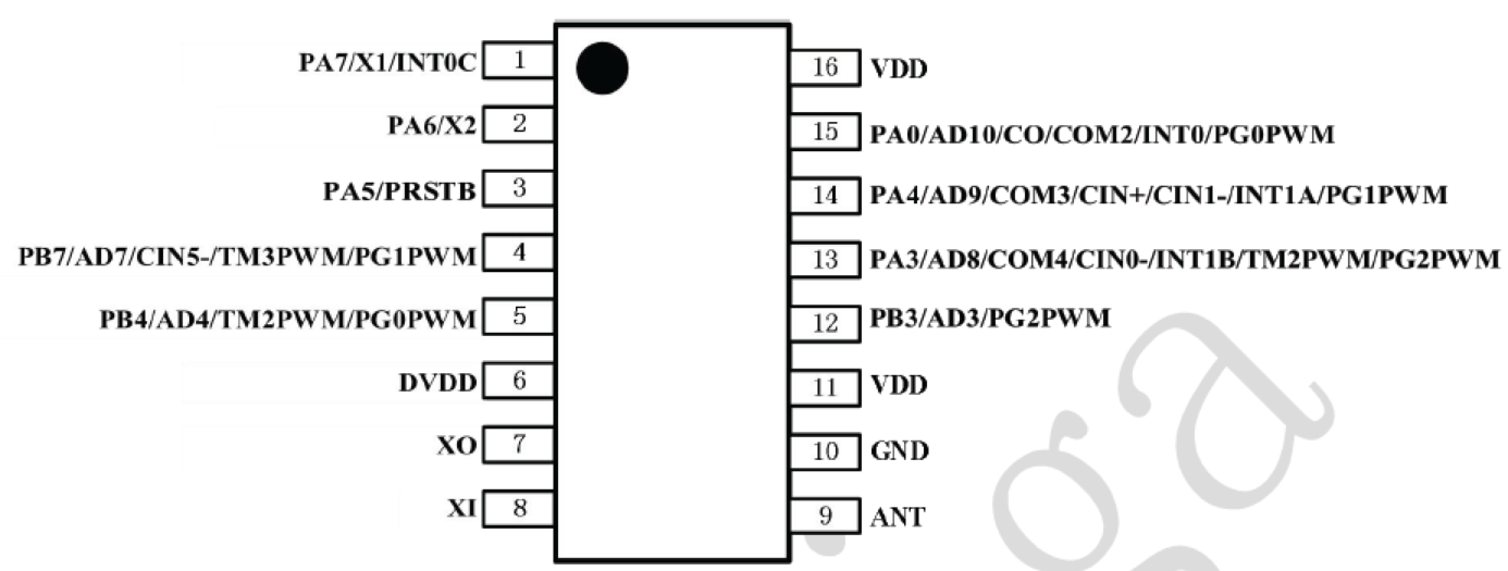 藍牙芯片的BLE射頻發射功率:最高3dBm。BLE接收靈敏度:-85dBm。包括4KW OTP ROM和256字節的SRAM。1個16位硬件定時器、兩個8位定時器(可作為PWM生成器)、三個11位硬件PWM生成器、一個硬件比較器、9個IO引腳、6通道12位ADC、ADC參考電壓、一組1T8X8硬件乘法器。時鐘模式內部高頻振蕩器,內部低頻振蕩器,外部晶體振蕩器。喚醒的IO支持兩種喚醒速度:正常和快速,大部分單周期指令,可設定堆棧指針和堆棧深度。MS1586的工作溫度:-20℃~+70℃,工作電壓為2.2V~3.6V,封裝采用SOP16(150mil)。