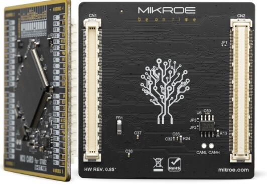 MCU卡是標(biāo)準(zhǔn)化的附加板,可以非常簡單地在配有MCU卡插槽的開發(fā)板上安裝和更換MCU。通過引入新的單片機(jī)卡標(biāo)準(zhǔn),我們確保了開發(fā)板與任何受支持的MCU之間的絕對兼容性,無論其引腳號和兼容性如何。MCU卡配備了兩個168針夾層連接器,從而使它們甚至可以支持具有極高引腳數(shù)的MCU。遵循Clickboard™產(chǎn)品線公認(rèn)的即插即用概念,其巧妙的設(shè)計(jì)允許非常簡單的使用。