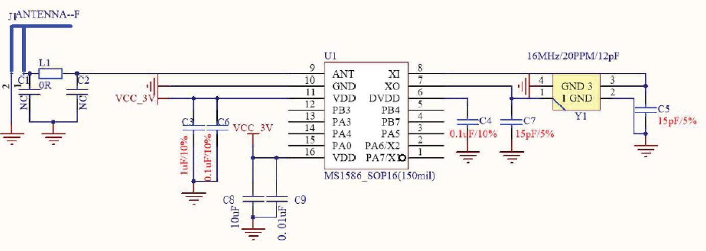 MS1586包含8位單片機(jī)和低功耗、低成本的BLE收發(fā)器,內(nèi)部集成了發(fā)射機(jī)、接收機(jī)、GFSK調(diào)制解調(diào)器和BLE基帶處理。遵循BLE廣播通道通信,具有成本低、體積小、控制方便等優(yōu)點(diǎn)。