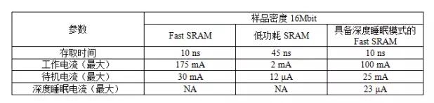 讓我們比較一下兩種常用SRAM-Fast和Micropower,以及具備深度睡眠模式的Fast SRAM的功耗和存取時間。